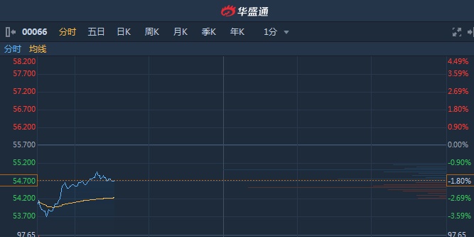 截至10时31分,跌1.8%,报价54.7港元,成交额3.965亿。