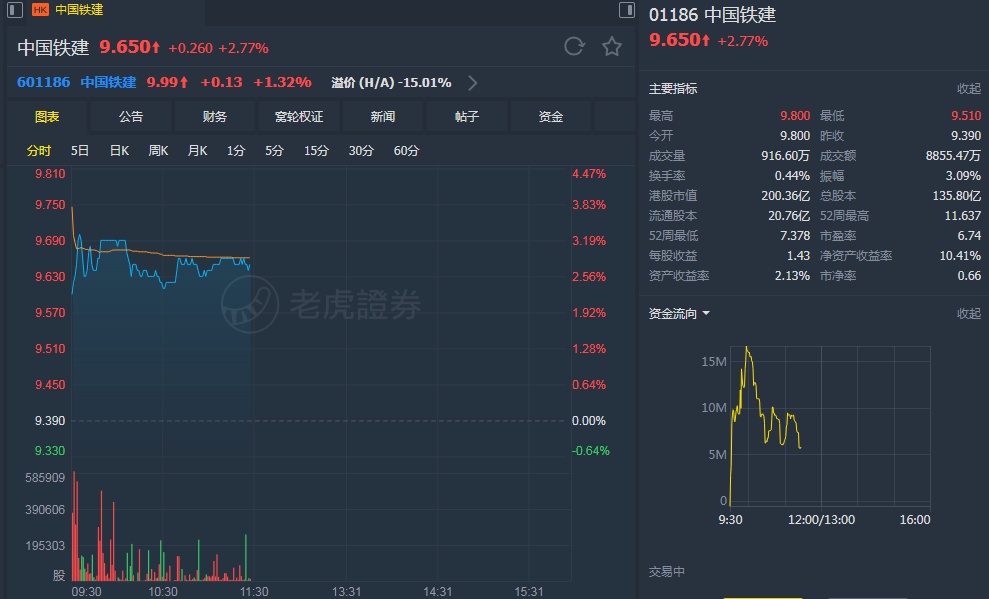 智通财经APP获悉,瑞银发表报告表示,重申对中铁建(01186)“买入”投资评级,为行业首选,目标价为13.2港元,此相当于预测2020年市盈率7.5倍。