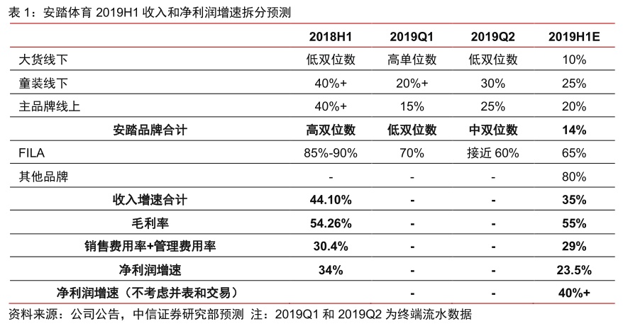 1、2019Q2经营数据公布,主品牌增长提速,非安踏品牌延续高增