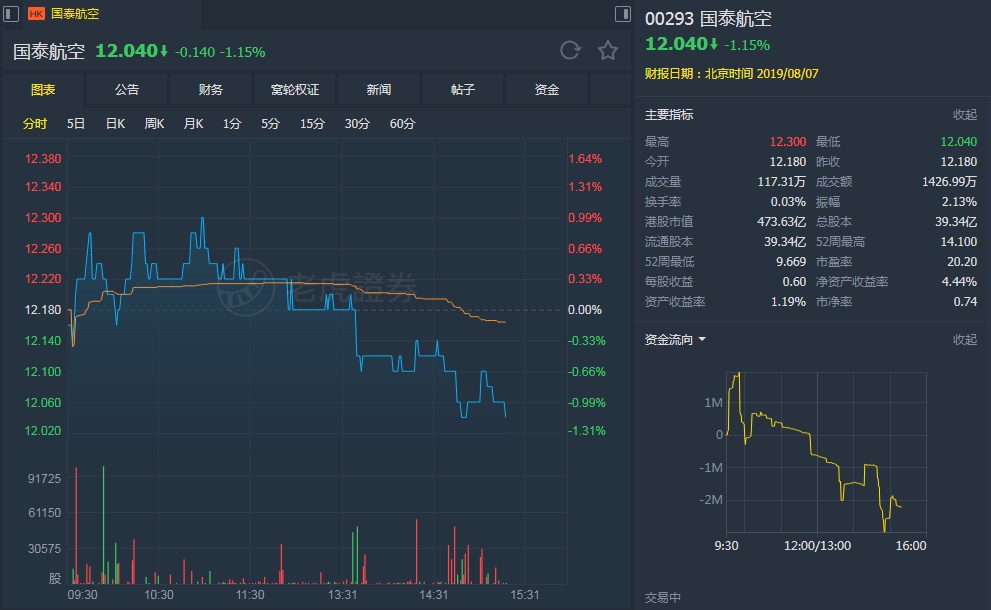 智通财经APP获悉,富瑞发表报告指出,国泰航空(00293)六月份的数据显示公司仍然面对不利环境,乘客收益率持续受压,而货运服务收益及需求也面对压力,但相信上半年仍可盈利,下半年表现会更佳,故维持其“买入”评级不变,目标价16港元。