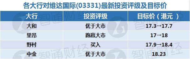 二,各大行对维达国际(03331)最新投资评级及目标价: