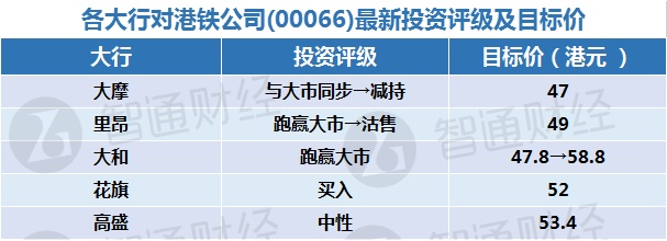 三,各大行对港铁公司(00066)最新投资评级及目标价: