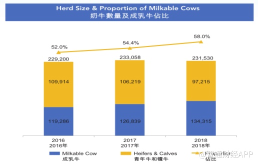 根据智通财经APP的了解,国内奶价经过几年的低迷期,中小养殖户陆续退出市场,奶牛养殖的存栏量相应下降。根据中国国家统计局数据,2016年至2018年国内原奶产量及存栏牛头数逐年递减。