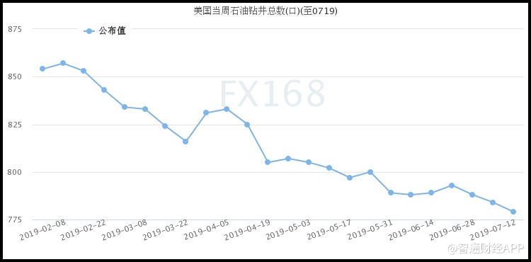 贝克休斯数据显示,截至7月19日当周,钻井商削减5座钻井平台,石油钻井总数下降至779座,为2018年2月以来新低。相比之下,去年同期有858座钻井平台处于作业状态。