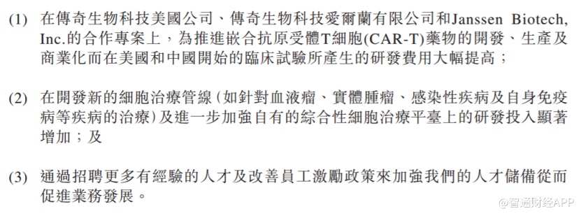 其实在盈警公告中,公司除提及了“研发超支”原因外,还提到了开发新的细胞治疗管线和引进人才导致开支增大,到公司并未列出同比增加的开支金额,以及这三部分原因造成开支所占的具体比例,因此目前市场对造成公司本财季由盈转亏的主要原因还不得而知。