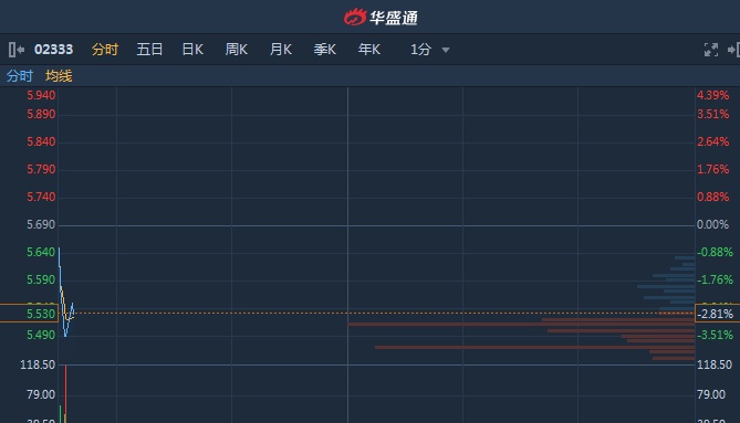 智通财经APP获悉,长城汽车(02333)于上周五发盈警,预计中期净利同比降57.8%至15.7亿元人民币,截至9时37分,跌2.81%,报价5.53港元,成交额1995万。