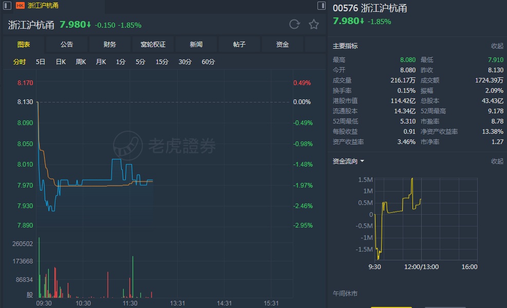 该行表示,指浙江沪杭甬今年至今增长超过20%,预计下半年收入预期持平,该行对公司看法转趋审慎,同时不看好公司近期收购酒店的交易。然而,公司目前的市盈率低于历史平均值一个标准差,股息率接近历史平均值,与同业相比估值合理,今年股息率预期为5.4%,为股价提供了支持。