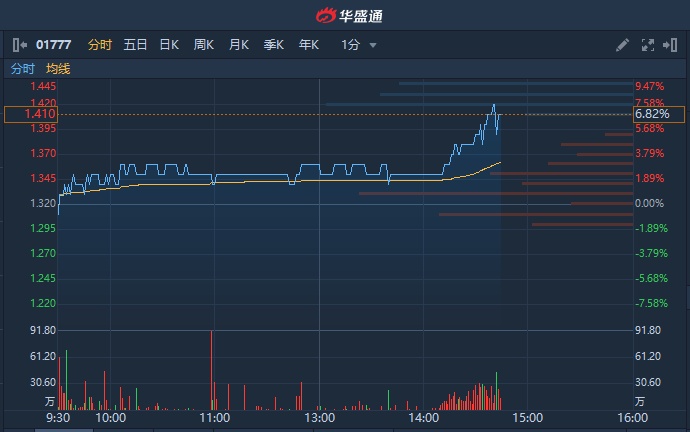 智通财经APP获悉,花样年控股(01777)午后突获强力拉升,放量显著。截至14时43分,涨6.82%,报1.41港元,成交额达2066万港元。