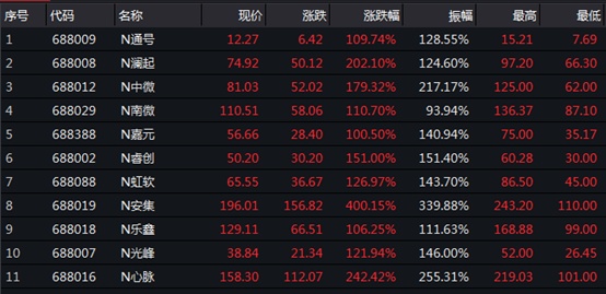 7月22日,万众瞩目的科创板迎来开市首日,25支新上市股票齐刷刷的暴涨刷屏了整个国内资本市场,其中无论是单日盘中交易量达到的9.24亿股,97.62亿元人民币的(单位下同)成交额,还是超1100亿元的总市值均排在第一位的,是在港股主板也上市了的中国通号,当日涨幅高达109.74%。