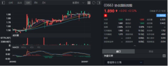 截至今日,协众国际控股(03663)涨0.53%,报1.89港币。