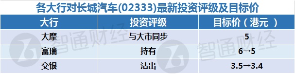 三,各大行对长城汽车(02333)最新投资评级及目标价: