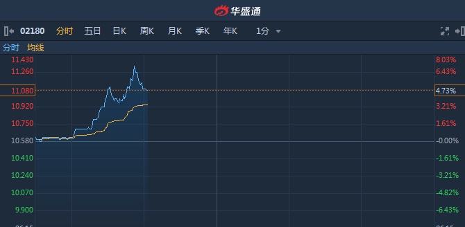 智通财经APP获悉,次新股万宝盛华(02180)获西南证券首予“买入”,目标价13.68港元。该股盘中破顶,高见11.36港元,截至11时02分,涨4.73%,报价11.08港元,成交额3348万。