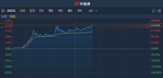 智通财经APP获悉,细价股平安证券集团控股(00231)股价暴涨,据悉公司是一家主要从事提供金融服务的香港投资控股公司。截至13时41分,涨154.9%,报价0.13港元,成交额2038万。