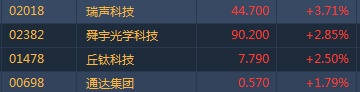 智通财经APP获悉,美国多家科技巨头要求及时解禁华为,特朗普对此表示同意。手机产业链全线走强,瑞声科技(02018)领涨板块。截至14时26分,瑞声科技涨3.71%,报价44.7港元,舜宇光学(02382)涨2.85%,丘钛科技(01478)涨2.5%,通达集团(00698)涨1.79%。
