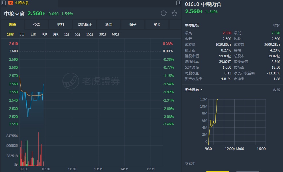 智通财经APP获悉,安信国际证券(香港)发布研究报告称,中粮肉食(01610)2019E-2021E年其净利润分别为7.33/16.92/19.04亿元人民币,EPS分别为0.184/0.422/0.493元人民币。当前股价分别对应PE12/6/5倍,估值较低,建议关注。