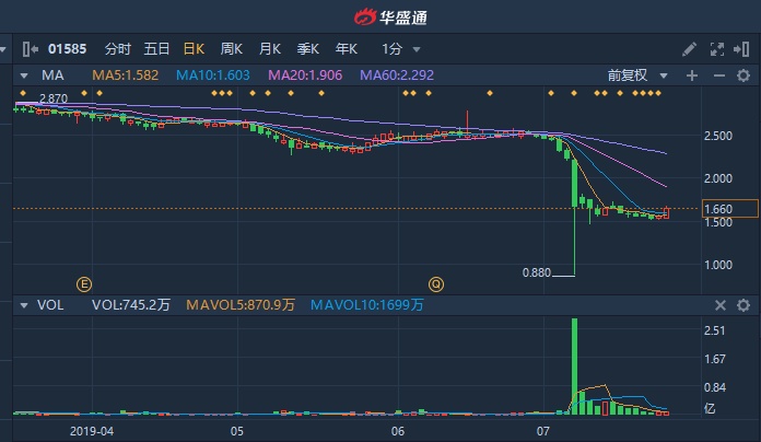 智通财经APP获悉,雅迪控股(01585)7月8日盘中闪崩以来,持续阴跌调整,今日低开高走,显著反弹。截至11时55分,涨5.73%,报1.66港元,成交额达1228万港元。