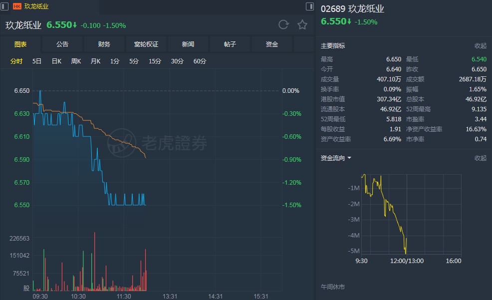 智通财经APP获悉,花旗发表研究报告称,下调玖龙纸业(02689)的评级至“中性”,并将目标价降低34%至7.5港元,预计今年上半年箱板纸需求低于预期,令其毛利受压,而且暂时仍未见到需求有复苏迹象。
