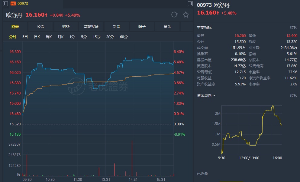 该行表示,该行预计欧舒丹全年营业利润率将增长到11.4%,核心纯利升幅为14%。欧舒丹现价相当于2020财年预测市盈率19倍,相比同业有30%折让,估值吸引。