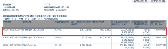 智通财经APP获悉,联交所最新资料显示,7月18日,摩根大通对广发证券(01776)减持247.78万股,每股作价9.1157港元,涉及总金额约为2258.7万港元。减持后摩根大通最新持股数目约为8353万股,最新持股比例为4.90%。