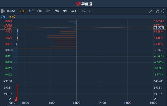 智通财经APP获悉,细价股中海重工(00651)早盘飙升,截至9时42分,涨78.57%,报0.025港元,成交额达119.9万港元。