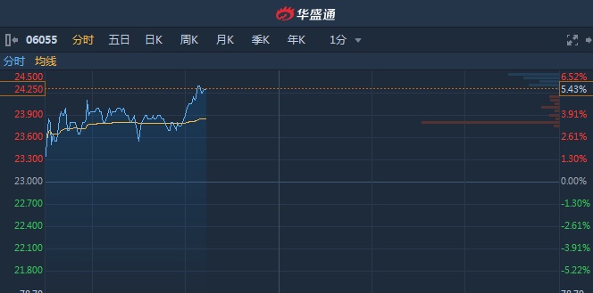 智通财经APP获悉,中烟香港(06055)现五连升累涨超43%,持续获资金追捧,股价连续攀升。截至11时12分,涨5.43%,报价24.25港元,成交额3.219亿。