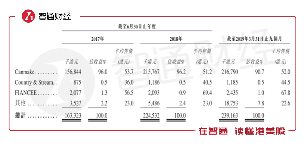 就公司目前所经营品牌来看,其销售产品主要来自四家供应商,分别来自两家香港公司、一家日本公司及一家韩国公司。其中,日本供应商IDA集团为公司最主要供应商,截至2019年3月31日,公司对IDA集团的采购金额占比高达86.2%。从公司按品牌划分的收入来看,由IDA集团提供的Canmake产品在2018财年为公司贡献了96.2%的收入。