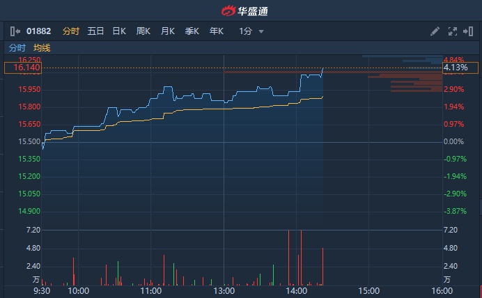 智通财经APP获悉,海天国际(01882)今日随大市震荡攀升,截至14时21分,涨4.13%,报16.14港元,成交额达2317万港元。
