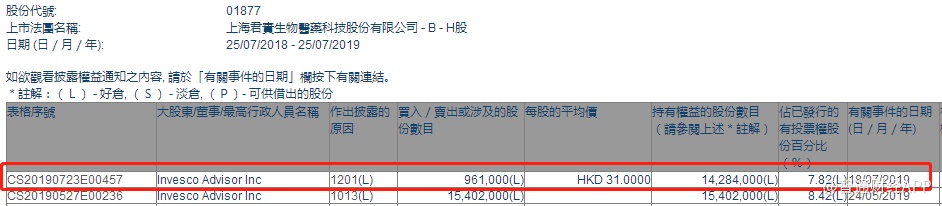 智通财经APP获悉,根据联交所资料显示,Invesco Advisor Inc于7月18日减持君实生物-B(01877)96.1万股,每股作价14.284港元,总价值约1372.69万港元,最新持股数减至1428.4万股,最新持股比例减至7.82%。