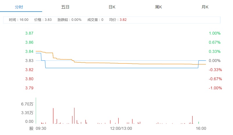 截至今日收盘,晋商银行(02558)平收,报3.83港元。