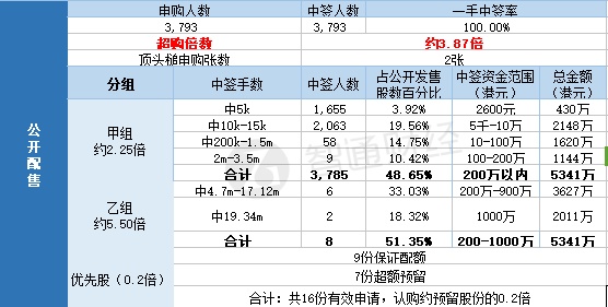 其中,公开配售申购人数3793,一手中签率100%,超购倍数约3.87倍。