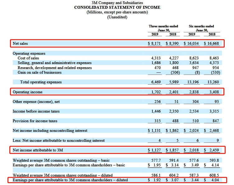 财报数据显示,截至2019年6月30日止3个月,公司实现净销售额81.71亿美元,较上年同期的83.9亿美元微跌2.61%,但超出市场预期的80.5亿美元;经营收入17.02亿美元,同比大跌29.11%;归母净利润大降39.31%至11.27亿美元;按GAAP计算,摊薄每股收益1.92美元,调整后每股收益2.2美元,好过市场预期的2.05美元。