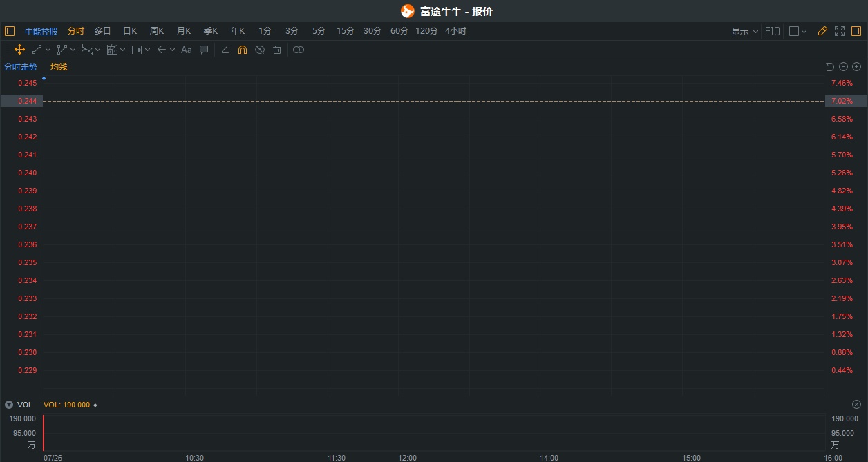 智通财经APP获悉,中能控股(00228)早盘跳空高开,截至9时25分,涨7.02%,报0.244港元,成交额46.36万港元。