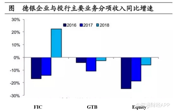 退出全球股票销售和交易业务的原因前文已有所分析,实际上该业务“拖后腿”也不是一朝一夕了。在投行业务中,固收销售交易(S&T-FIC)、全球交易银行(GTB)、股票销售交易(S&T-Equity)收入占比较大,可以看到2016-2018三年之中,股票销售的增速最低,成为集团砍掉该业务的原因之一。