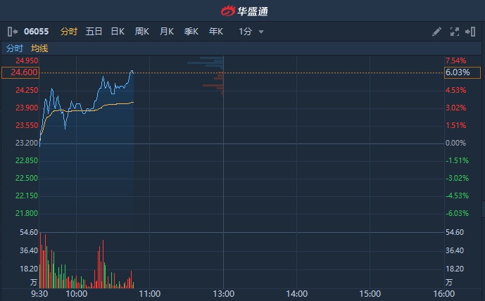 智通财经APP获悉,中烟香港(06055)昨日尾盘跳水回落,今早攻势再起,截至10时46分,涨6.03%,报24.6港元,成交额达2.718亿港元。