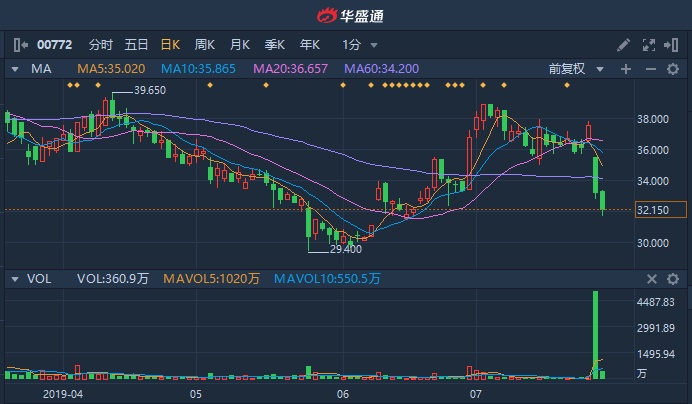 智通财经APP获悉,阅文集团(00772)昨日重挫失守全部均线,今日继续破位下行,截至13时49分,跌3.61%,报32.05港元,成交额达1.218亿港元。
