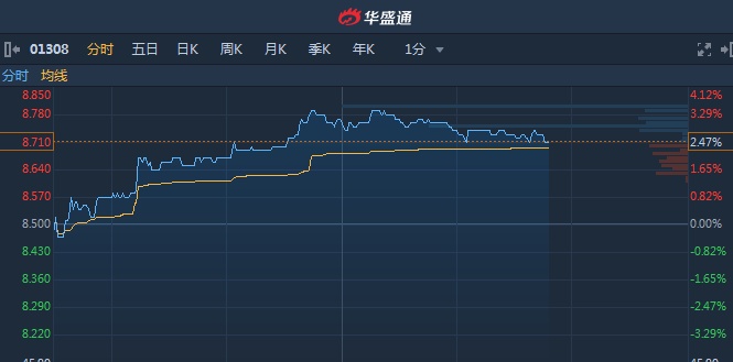 值得注意的是,该股连续两个交易日累涨近9%,今日盘中高见8.8港元,创近14个月新高。