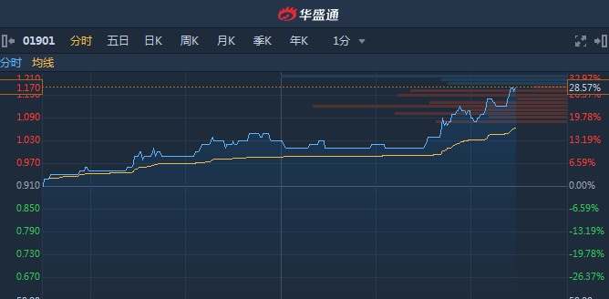 智通财经APP获悉,次新股飞扬集团(01901)午后股价飙涨,高见1.18港元,创上市新高,截至15时27分,涨28.57%,报价1.17港元,成交额1178万。