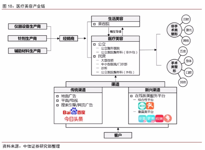 在线医美服务平台:经验分享+定向推送+引导消费,打破传统获客渠道模式。在线医美服务平台有医美知识科普、美丽日记分享、专家解疑、社区互动、在线商城等栏目,在分享、学习、交流中完成医美服务的对接。百度等传统线上模式,以将流量转移至医美终端官方网站为主,相应获取搜索、点击为主的广告性收入;而在线医美服务平台可实现交易的闭环,同时获取广告性收入和佣金收入。
