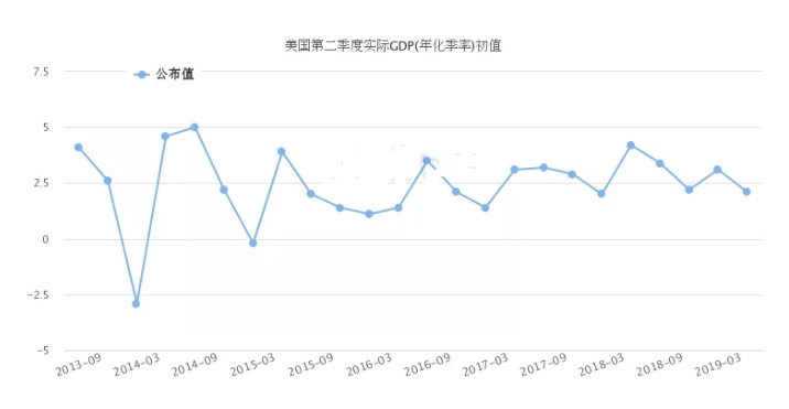原因之一:昨晚新鲜出炉的美国二季度GDP增长2.1%,创下2018年第四季度以来最低,但超出市场预期。