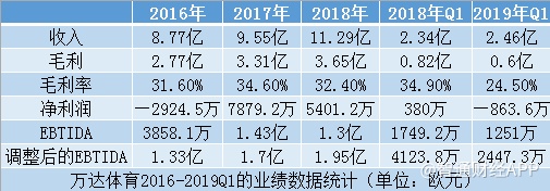 与此同时,万达体育的净利润增长并不稳定。公司2017年实现了7879.2万欧元的净利润,但至2018年时同比下滑超30%,且2019年一季度由盈转亏,即使调整后的EBTIDA也同比下滑超40%,主要原因是销售成本的大幅增加。