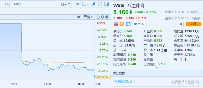 即使在一系列的“让步”之后,万达体育(WSG.US)仍“喋血”纳斯达克,上市首日暴跌35.5%。