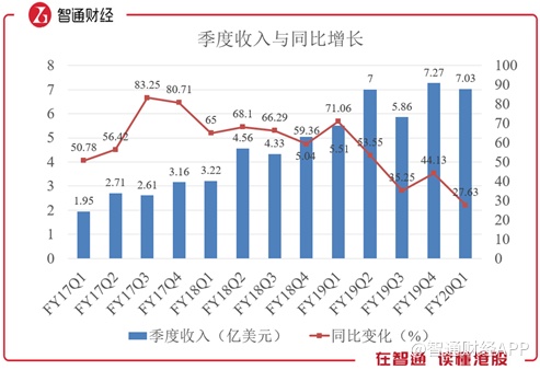 智通财经APP观察到,从季度数据看,从2019Q1(2018.03.01-2018.05.31)开始,好未来的收入增速大幅下滑,从71.1%降至2020Q1的27.6%。