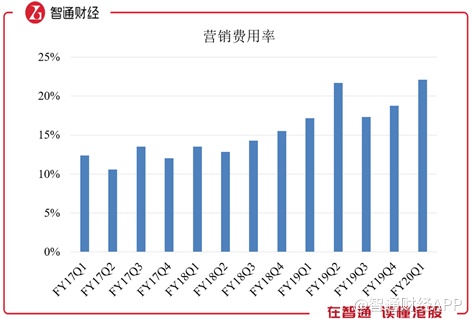在营收增速不及以前,毛利率没有明显增长的情况下,营销费用却仍然增长了64%,导致了营销费用率再创新高,超过22%。同样,行政费用也明显增长,行政费用率达到了25%,营业利润跌至仅8%,因此净利润空间被严重压缩,也是本季度净利润亏损则最主要原因。