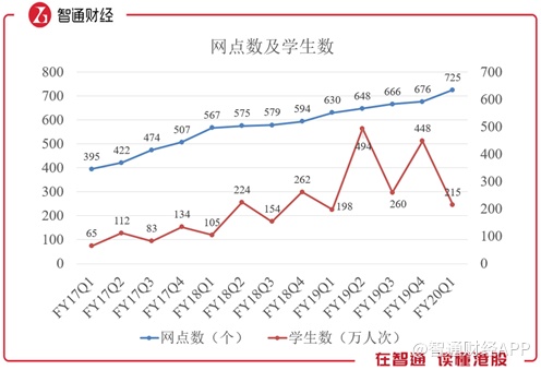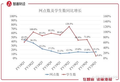 智通财经APP认为,长期课程的人均学费一般较低,如果财报中披露的长期课程为小班教学,意味着长期课程的学生人数占比超过80%。为了方便比较,若按照80%计算,则本季度学生人数约为215万人,同比仅增长8.6%,创下近几年的绝对低点,而实际上则更低。若按照171.8万人计算,甚至出现了同比负增长。