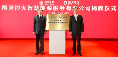 辛保安与许家印为国网恒大智慧能源服务有限公司揭牌