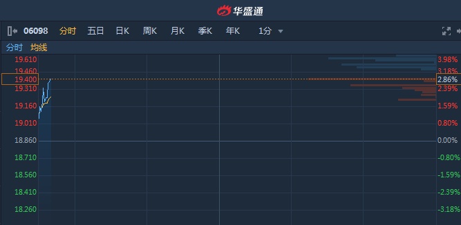 智通财经APP获悉,碧桂园服务(06098)早间发盈喜,上半年纯利及股东应占溢利均同比预增逾50%,截至9时39分,涨2.97%,报价19.42港元,成交额2219万。