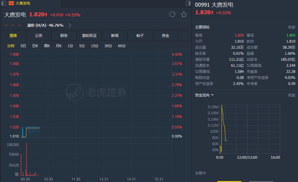 该行表示,大唐上半年发电量下降5.2%,第二季下降5.4%,较第一季加快,主要是由于高压发电及水力发电疲弱。该行还将公司未来两年盈利预测调低16%及6%。