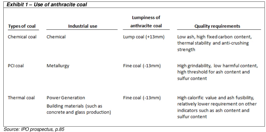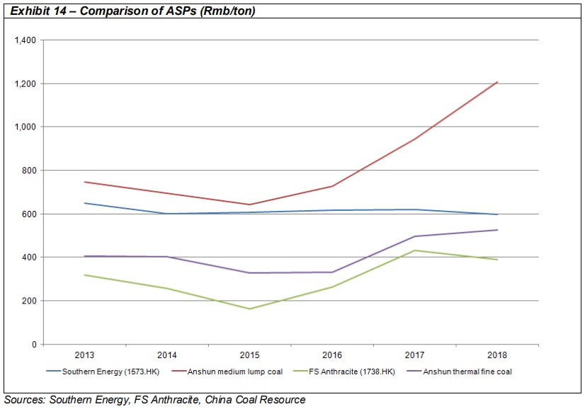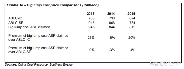 其一,竞争对手生产的无烟煤产品以热能煤为主,南方能源的无烟煤产品则以化学块煤(74%)和PCI细煤(25%)为主。而化学块煤和PCI细煤的价格远高于热能煤;