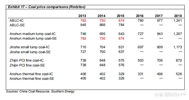 -尽管技术指标不同,但安顺中块煤SE的价格与ABLC-IC的价格相同(如图表17中红字所示)。