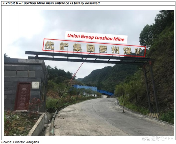 2019年第二季度,艾默生公司的调查人员对南方能源的煤矿进行了全面的现场调查。下面的图表6显示了罗州煤矿的主入口。照片中的道路是矿山唯一的车辆通道。连续几天,我们都看到矿井非常安静,没有煤矿工人,并且完全没有看到运煤卡车。